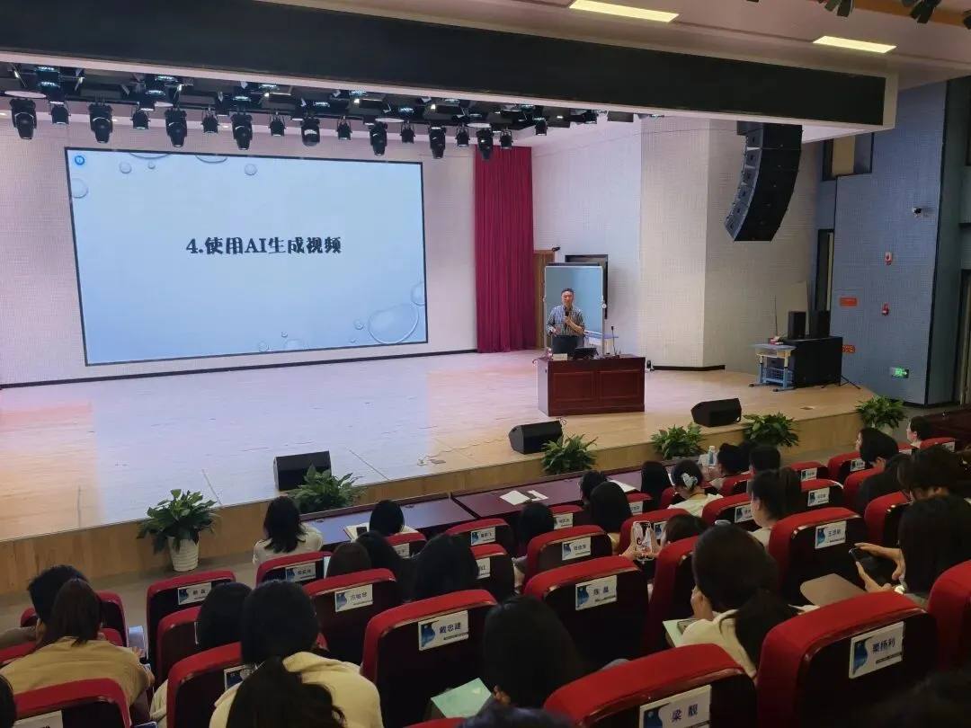 讲座中,郤院长结合语文、数学、美术、信息等多学科真实案例,现场演示AI在智能备课、课件生成、命题设计、作业批改、学情分析等场景的实操应用,清晰拆解从提示词编写到成果优化的全流程,让老师们直观感受 AI 赋能教学的高效与便捷。