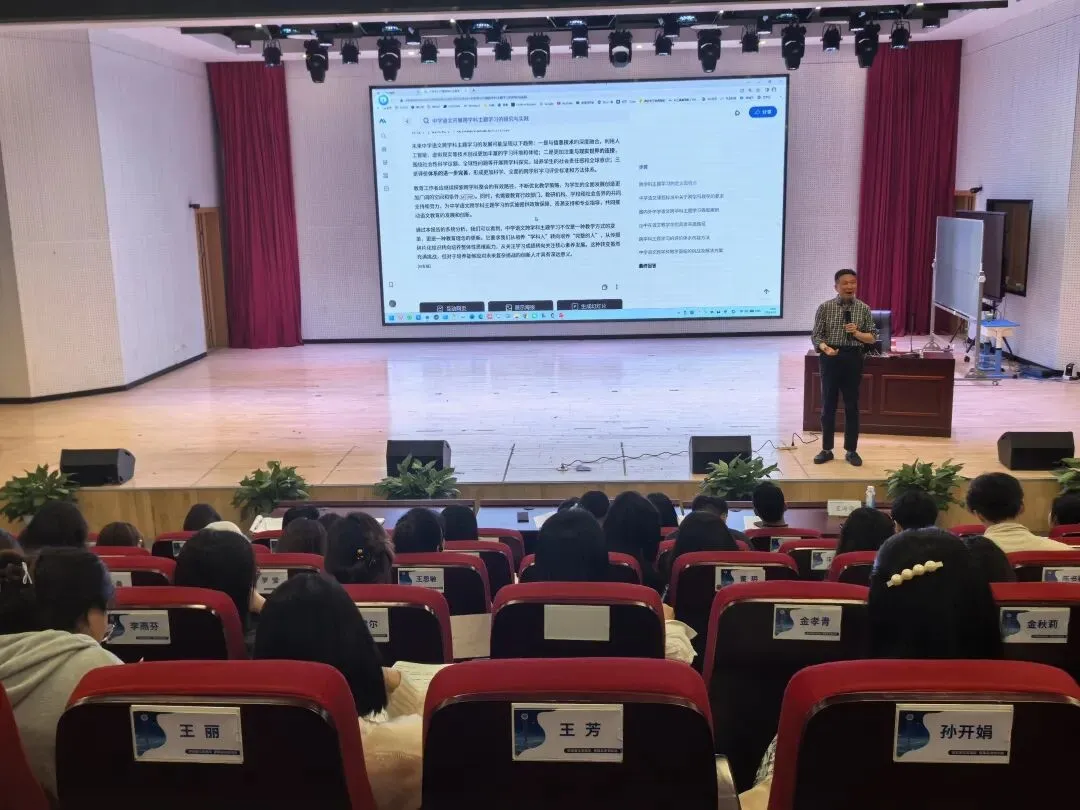 郤云江副院长立足中小学教学实际,围绕 DeepSeek 等主流AI大模型,系统阐释人工智能与教育教学深度融合的实践路径。他强调,AI不是替代教师,而是升级教学方式、提升教研效能、优化育人质量的强力助手,鼓励青年教师主动拥抱新技术,让智能工具服务于课堂创新与学生发展。