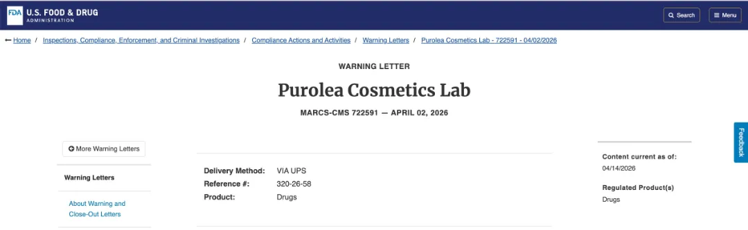 https://www.fda.gov/inspections-compliance-enforcement-and-criminal-investigations/warning-letters/purolea-cosmetics-lab-722591-04022026