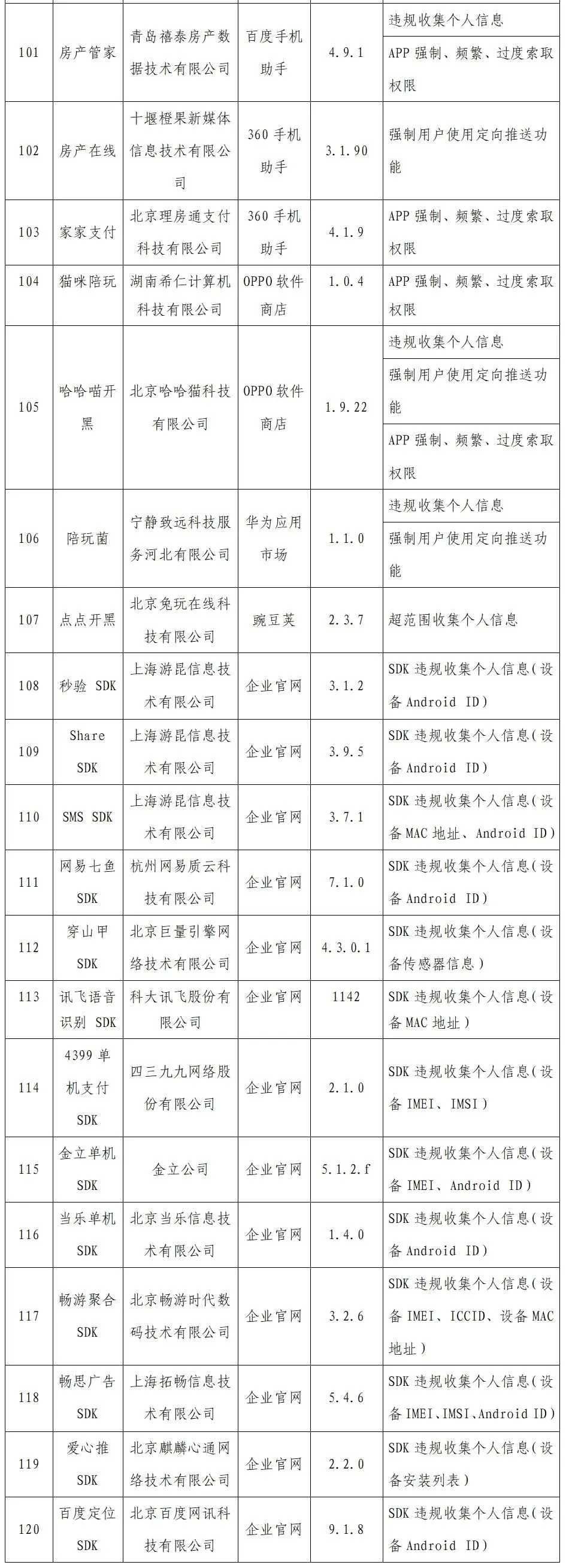 附件:工业和信息化部通报存在问题的APP(SDK)名单