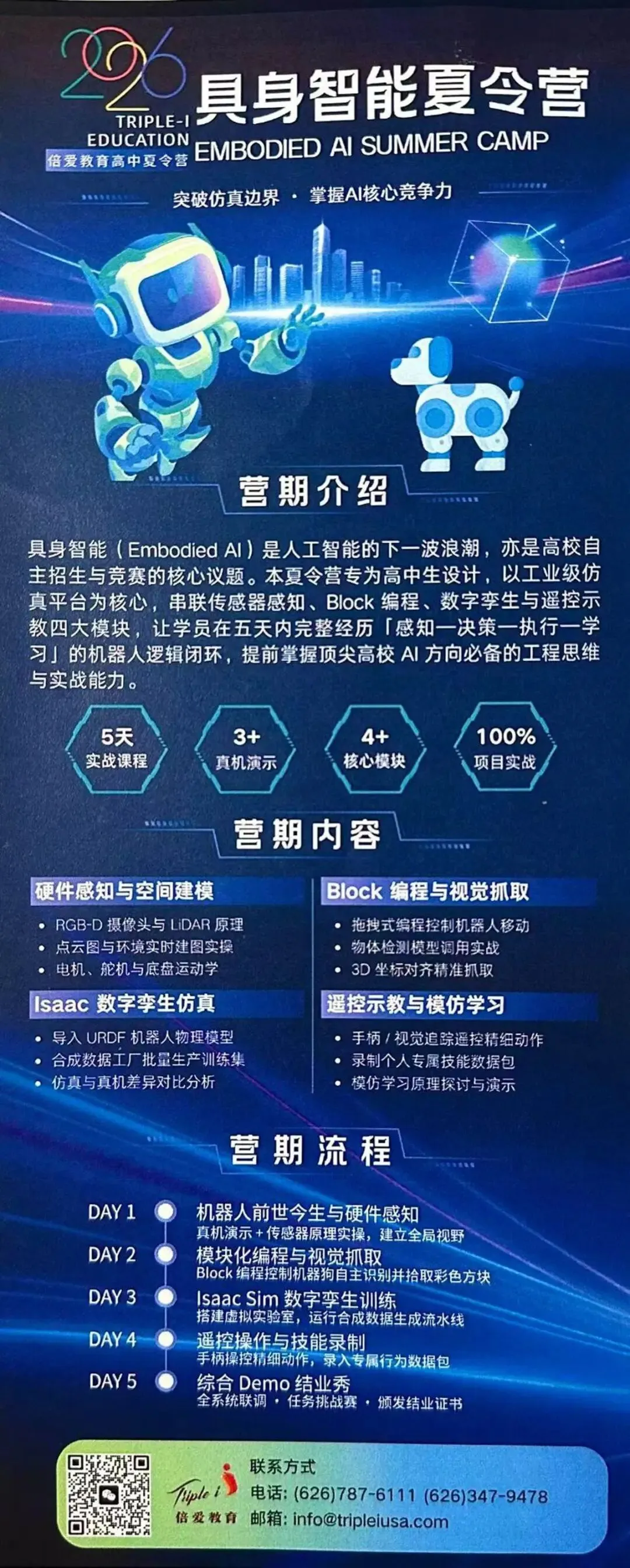 机器人首发夏令营由南加大教授设计课程,课程内容与重点注重能力培养。首批面向初中、高中阶段青少年,欢迎报名!