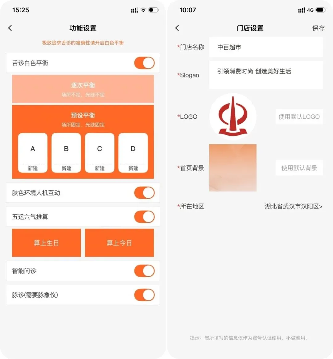 舌诊白平衡:光线复杂的店可动态校准,固定光线的店可预设4种方案,一键切换。