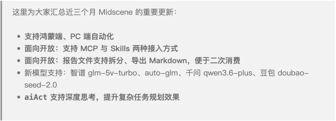 AI自动化工具Midscene重要更新:鸿蒙、PC端全覆盖,新增模型、Skills及报告解析能力