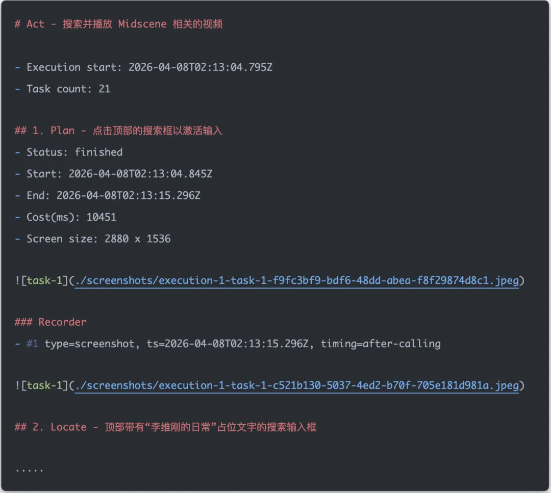 Midscene 将报告从仅用于人工调试的 HTML 页面,升级为可被二次处理的标准化数据产物,打通自动化结果全链路复用。