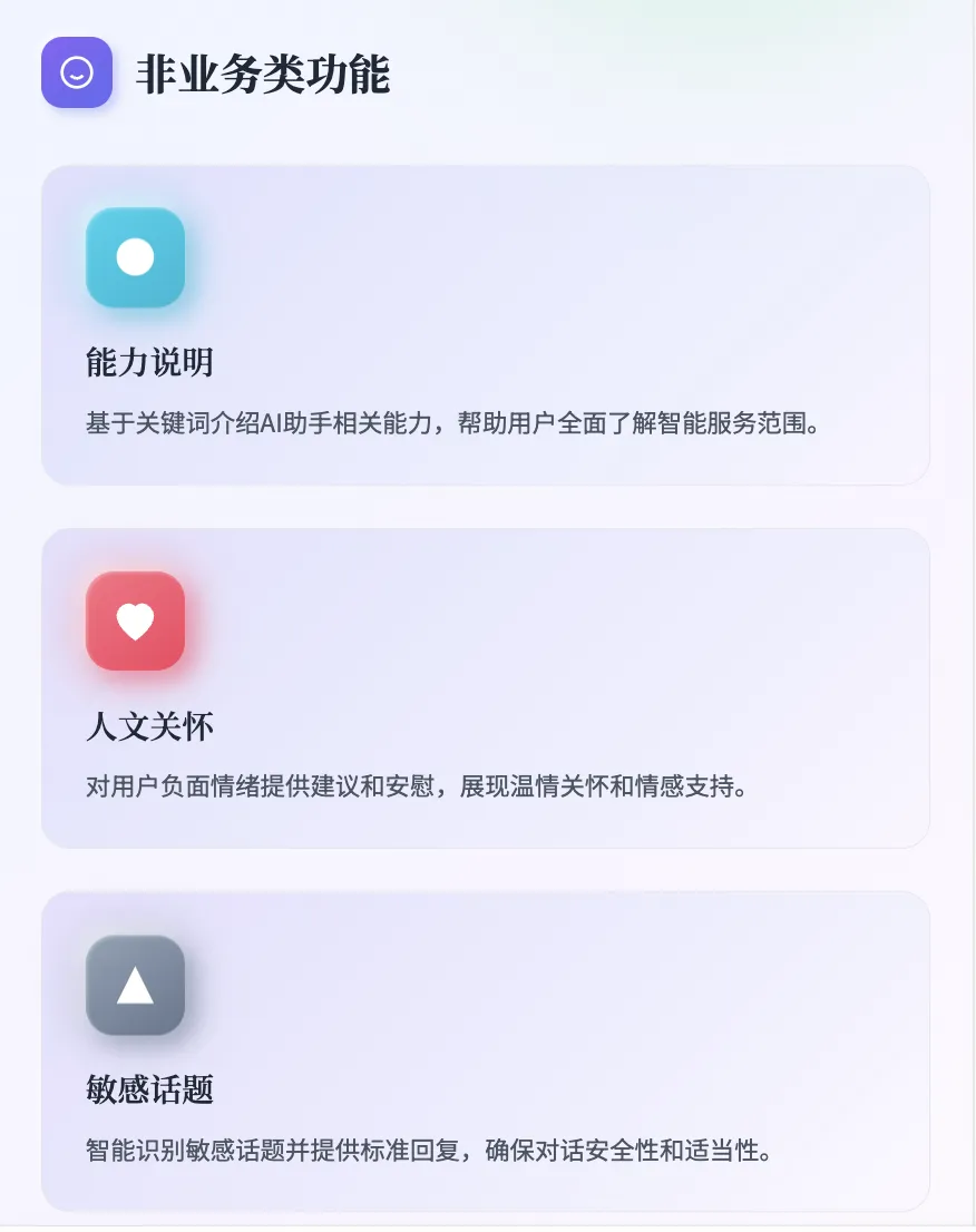 对于敏感话题,AI助手提供标准回复,确保对话的安全性和适当性。