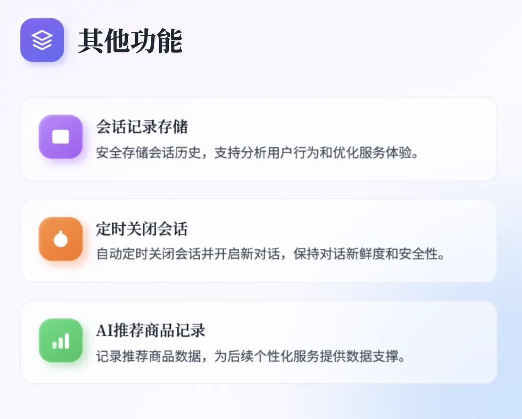 AI助手实现会话记录的存储功能,有助于分析用户行为和优化服务。