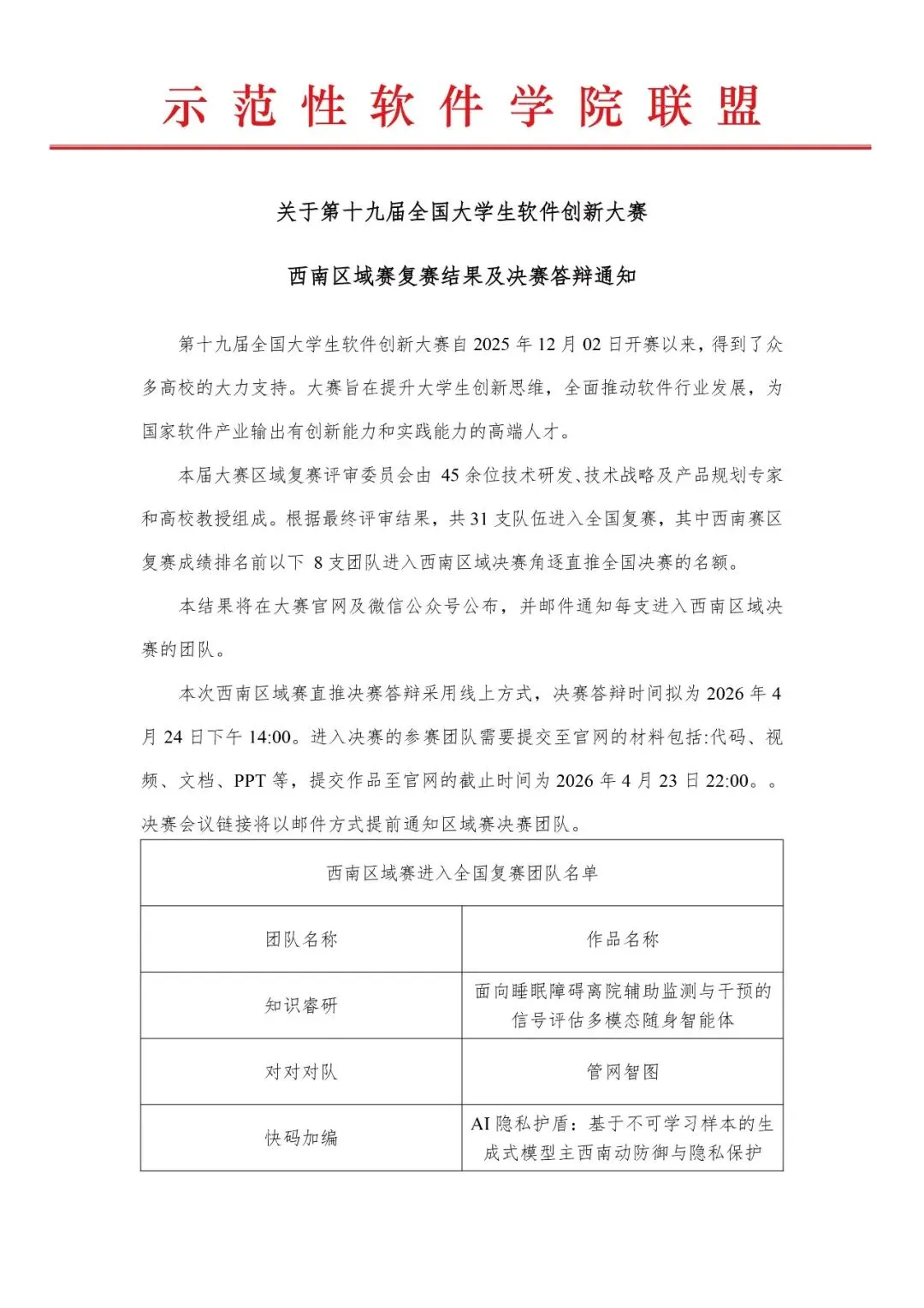 西南区域 | 关于第十九届全国大学生软件创新大赛西南区域赛复赛结果及决赛答辩通知