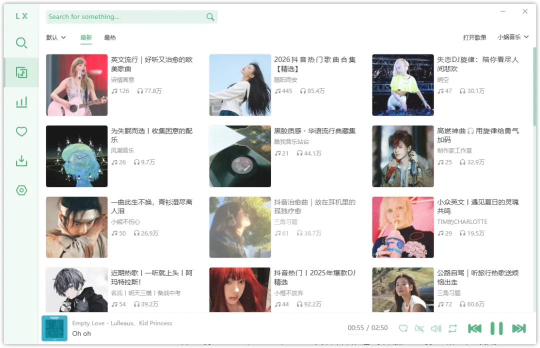 后来朋友给我推荐了一款开源软件,叫洛雪音乐(LX Music)。用过一段时间,我就直接把我手机里的其他听歌软件全卸了,直剩他一个,别的不说,他就是给我这样的底气。