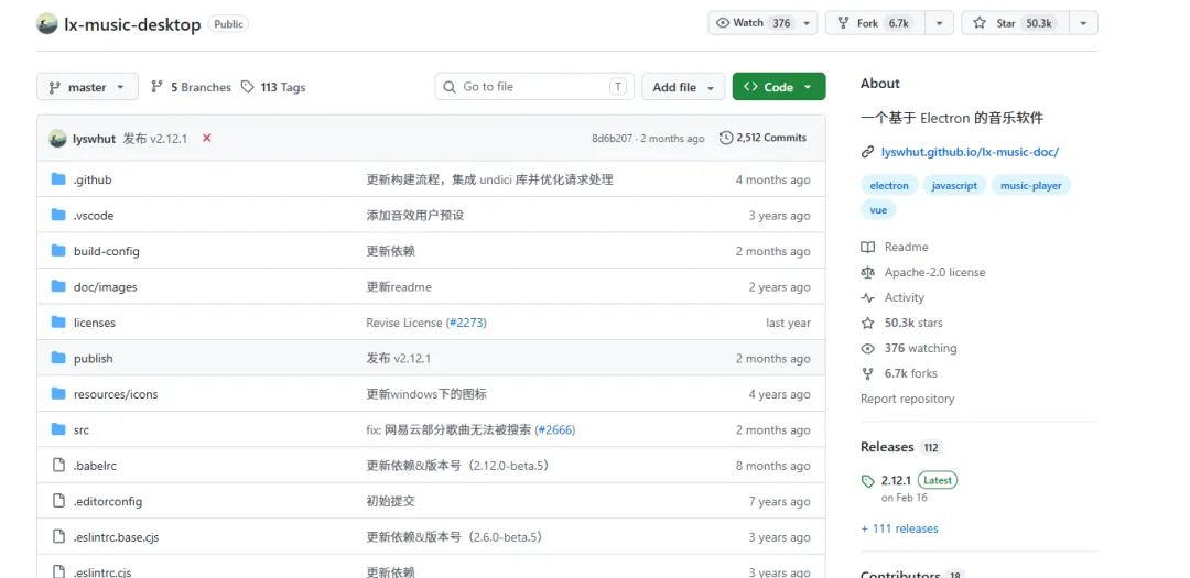 目前洛雪音乐在GitHub上已经有5万多人标星,项目社区非常活跃,全球用户量也是非常巨大。