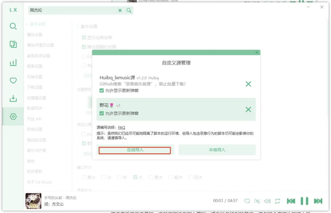 点击“导入”按钮,选择在线导入,找到我给你的音源地址,确认导入。