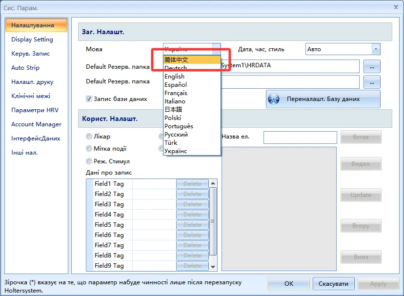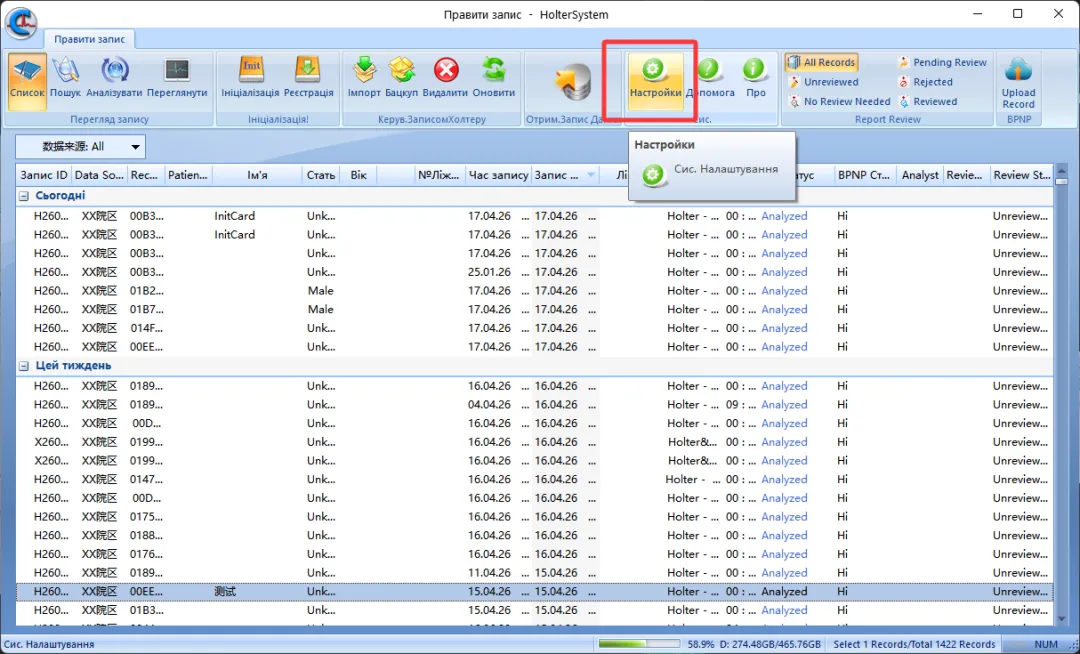 虽然动态心电软件的界面语言不认识,但是软件的图标是不会变的,只要点击图上这个像绿色齿轮的图标,就能打开软件的设置选项。