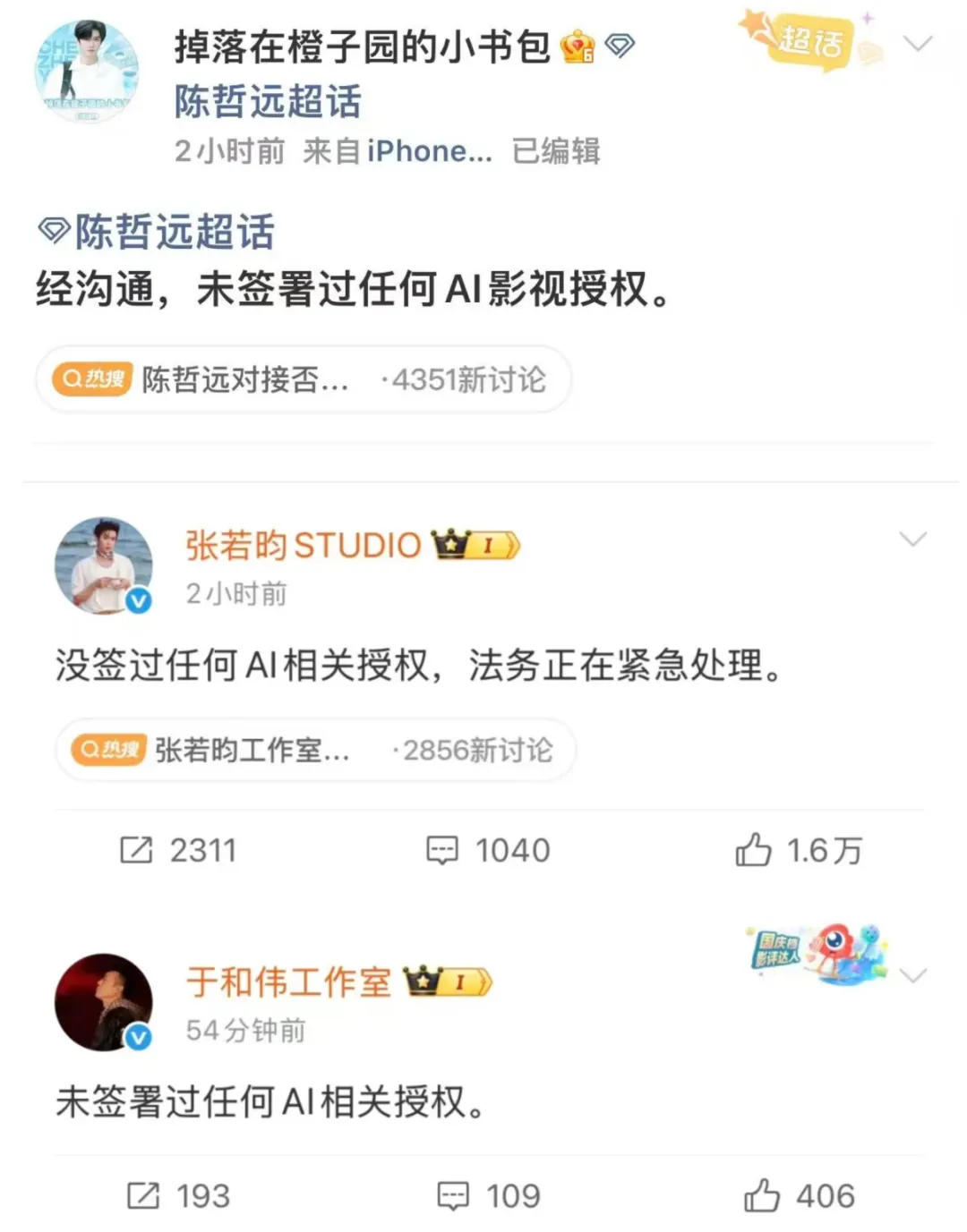 这样来理解——大制作公司可能现在会忌惮明星效应,所以现在才开始筹备搭建AI艺人库,才产生了现在这一堆“授权”问题的风波。