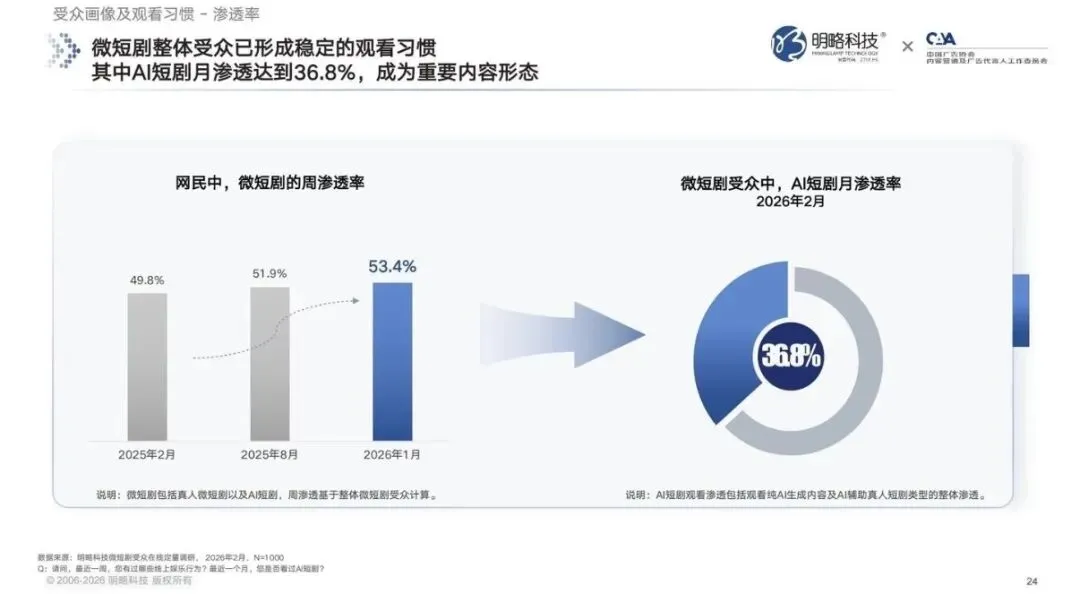 数据说明AI已经成功渗入短剧,观众达成观看习惯©️明略科技