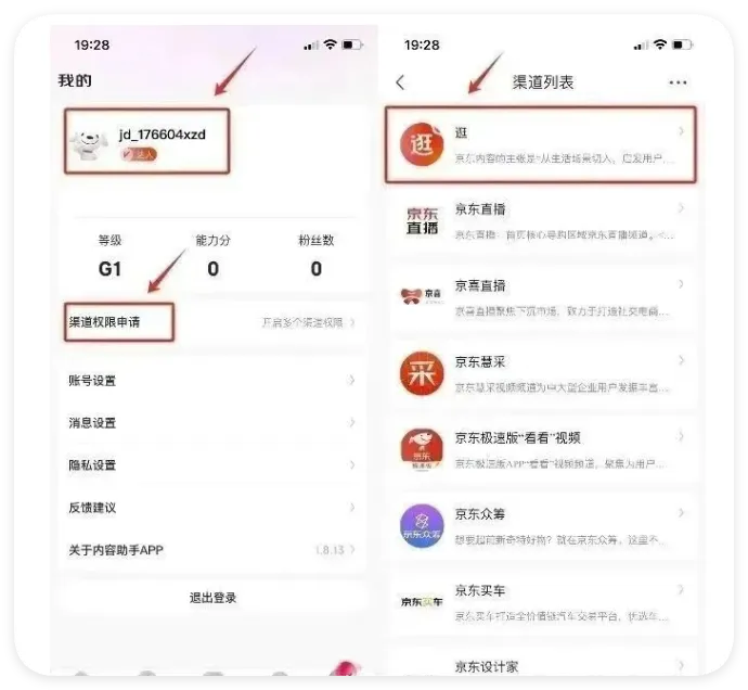 浏览器搜 京东创作服务平台 ,用手机号注册京东账号,登录后点左边菜单栏的 创作 → 渠道申请 ,找到 “逛” 这个渠道,点申请通过就行。