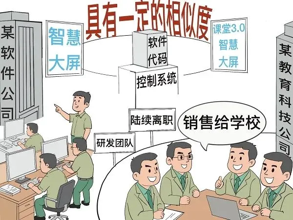 法院认为,根据广东省知识产权保护中心出具的鉴定意见,在排除影响对比文件后,通过比对2020年6月公证机构采集的“智慧大屏”与“课堂3.0智慧大屏”,计算哈希值确定检材与样本中相同的文件、相似的文件,计算出相同或相似文件的数量占安徽某软件公司软件的97.25%,占安徽某教育科技公司软件的88.33%。在对比公安机关调取的双方软件(2018年3月“智慧大屏”版本和2018年12月“课堂3.0智慧大屏”版本)的目录结构和源代码文件,在排除影响对比文件后,通过文件检索、软件对比分析确定相同、相似源代码文件数占安徽某软件公司参与对比的非公知源代码文件总数为27.8%,占安徽某教育科技公司参与对比的非公知源代码文件总数为13.8%。通过鉴定,被诉侵权软件与权利软件具有一定的相似度。根据在案证据可以认定安徽某教育科技公司未经安徽某软件公司的许可,部分复制了权利软件,安徽某教育科技公司应当对其部分复制权利软件的行为承担相应法律责任。强某等四人与安徽某教育科技公司具有共同侵权的故意,并共同实施了侵权行为,应共同承担侵权责任。
