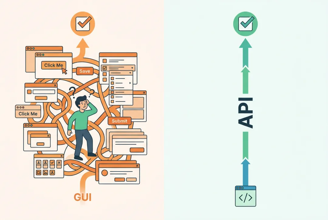 现在 Agent 能写代码、调 API、发 HTTP 请求——它不需要那个翻译层。对 Agent 来说,那一堆按钮和菜单不是帮助,是障碍。