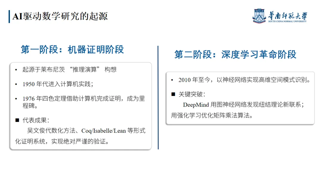 AI的出现推动数学研究进入知识整合、流程重构、跨域融合的新范式,从传统封闭、分领域、演绎驱动的模式,转向开放、协同、数据驱动的新模式。