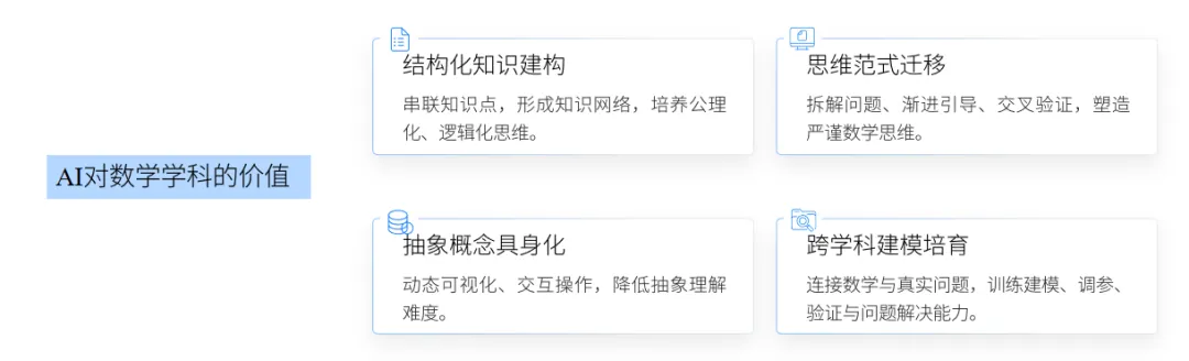 技术解放教学精力:技术承担了大量重复性、机械性的练习与批改工作,让学生和教师有更多精力聚焦于数学抽象、逻辑推理、数学建模、数据分析等高阶思维活动。