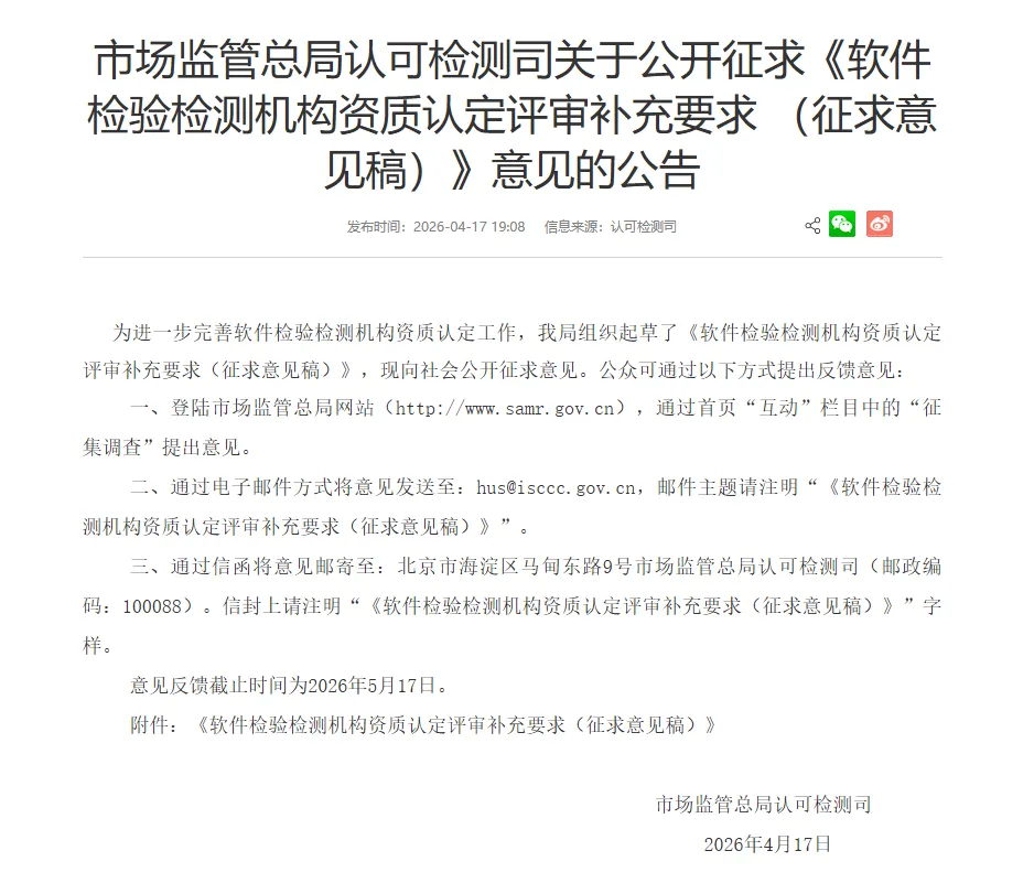 软件检验检测机构资质认定评审补充要求(征求意见稿)核心要点
