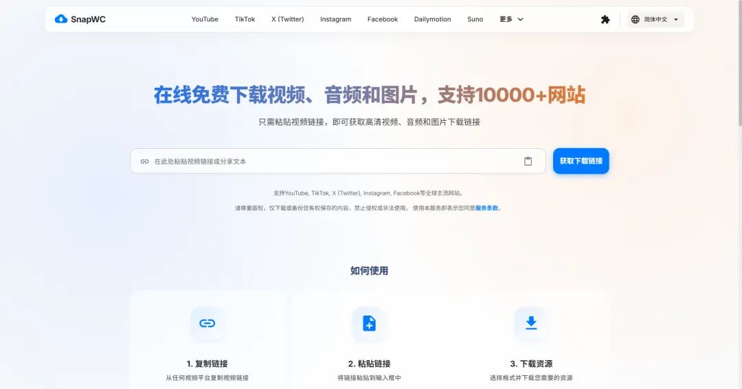 平时想保存 YouTube、TikTok、X、Ins、Facebook 上的高清视频、音频和图片