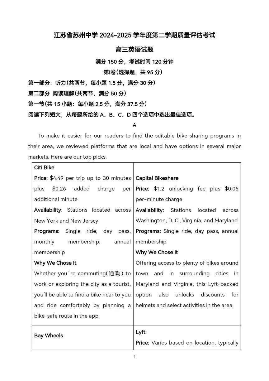 高三英语模拟试题苏州中学 有解析可打印