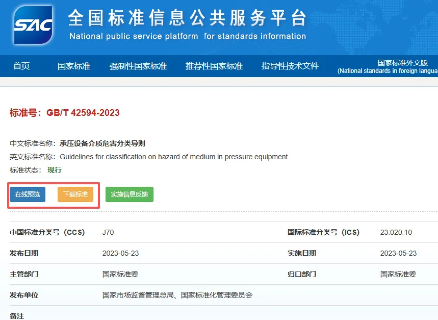 查询方法,输入标准号 / 名称 → 检索 → 在线预览 / 下载,如在全国标准信息公共服务平台,输入GB/T 42594,点击检索,在显示列表中点击该标准号或查看详细;