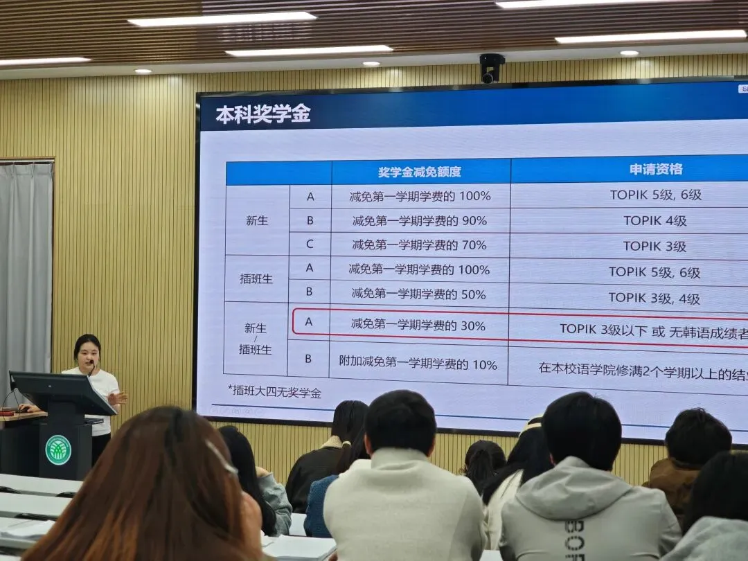 ②通过烟大申校的同学,新生topik3级即可享受第一学期学费全免,插班生topik3级可享50%学费减免,研究生topik3级享受70%学费减免。