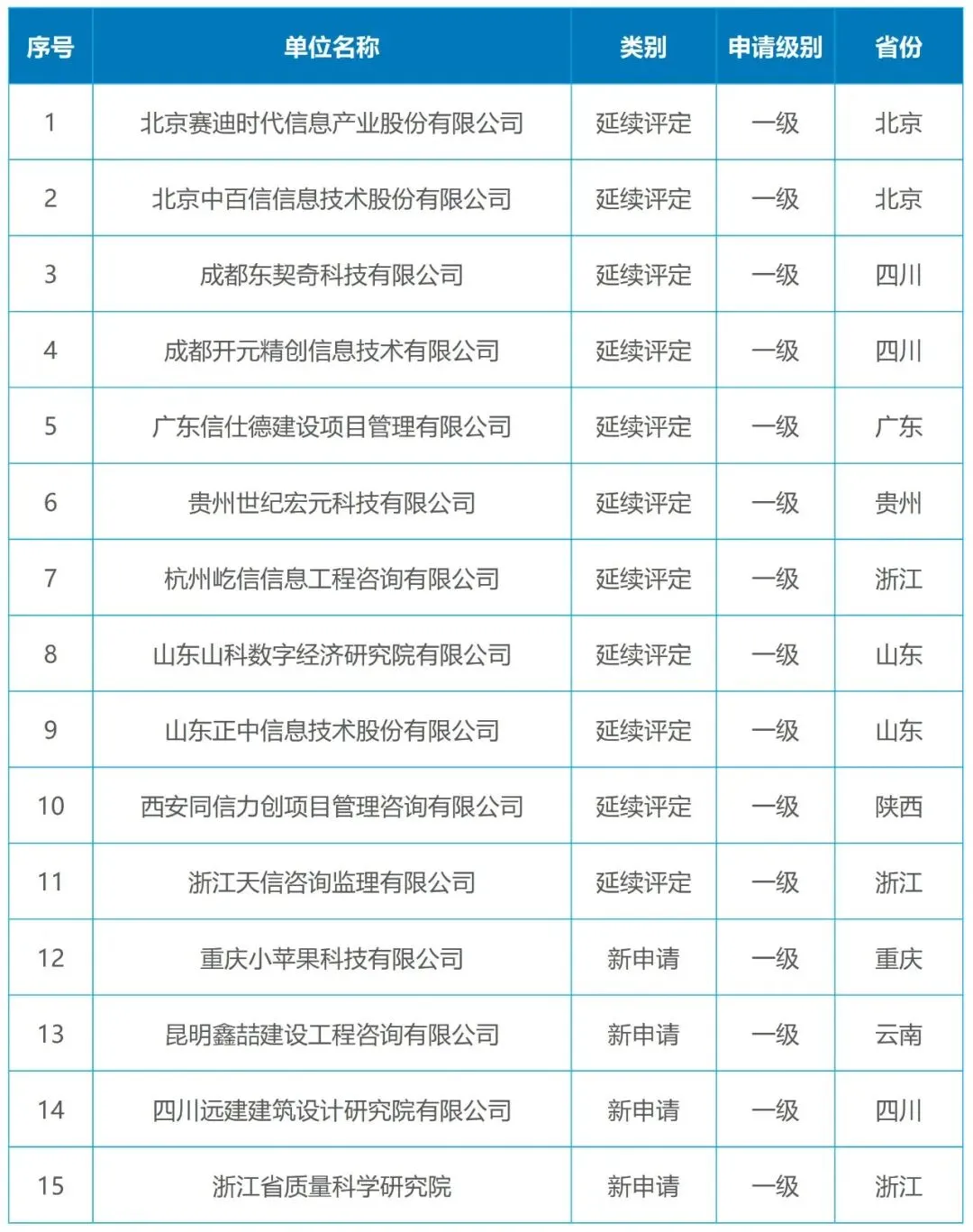 为秉承公开、公平、公正的原则,广泛接受社会监督,现将15家符合软件造价评估机构服务能力等级要求的机构予以公示。公示期为7天,自本公告发布之日起计算。