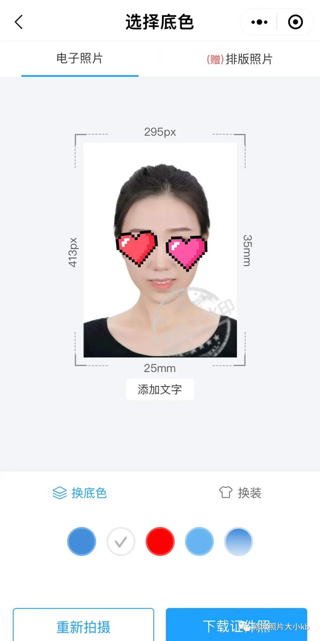 步骤四、最后也是选择我们需要的证件照底色,最后‘下载证件照’就可以将我们的一寸电子照拍摄完毕了。