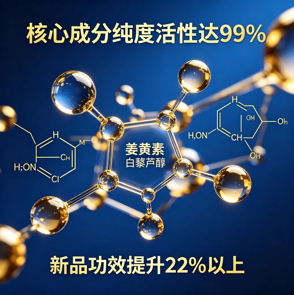 功效升级:姜黄素、白藜芦醇等核心成分纯度活性达99%;植物干细胞、活性肽类新品核心指标提升22% 以上
