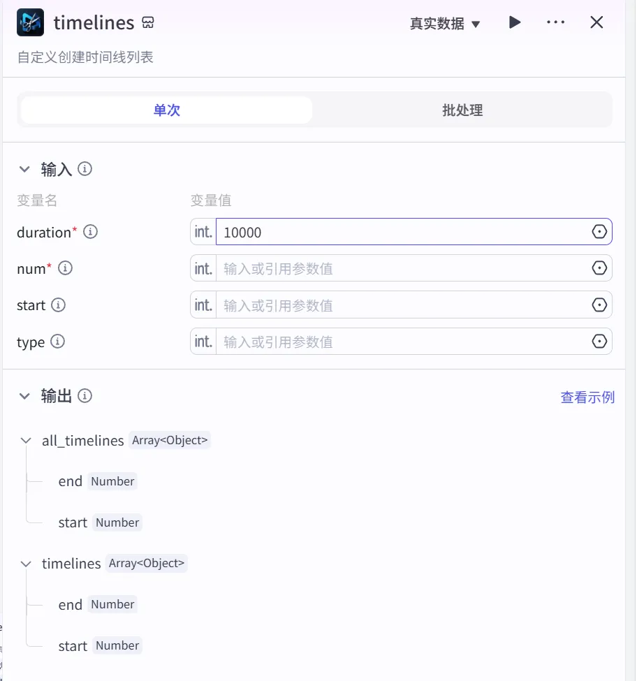 自定义创建时间线列表,也就是说用这个节点的时候是自己设定好时间线数据的,什么时候开始什么时候结束都是自己手动设置好的。