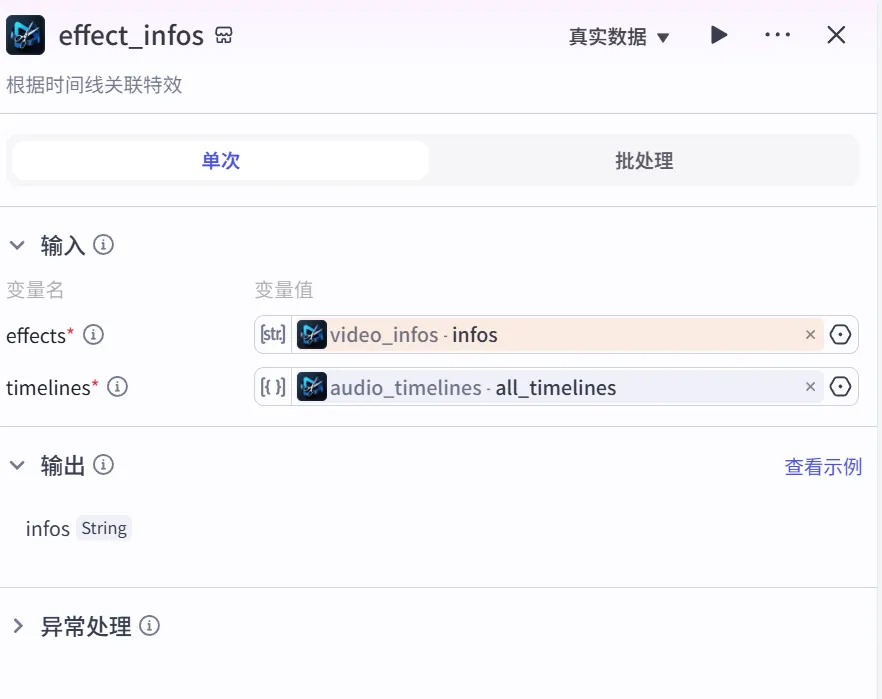 根据时间线关联特效,这个节点主要作用就是根据时间线数据插入特效