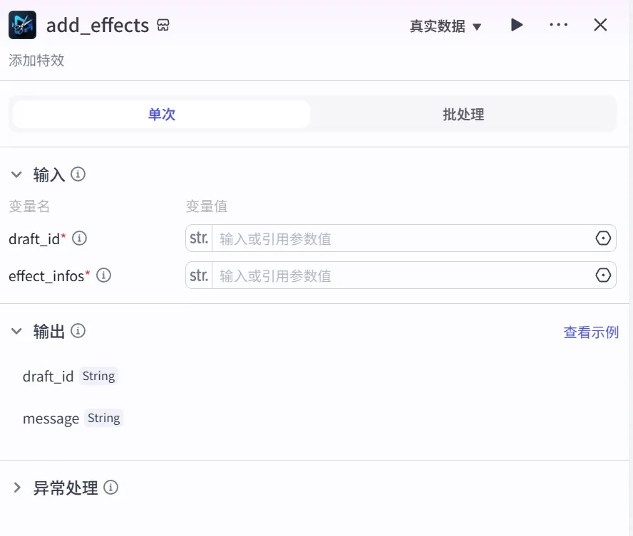 添加特效,非常简单。就连草稿ID和制作的特效数据