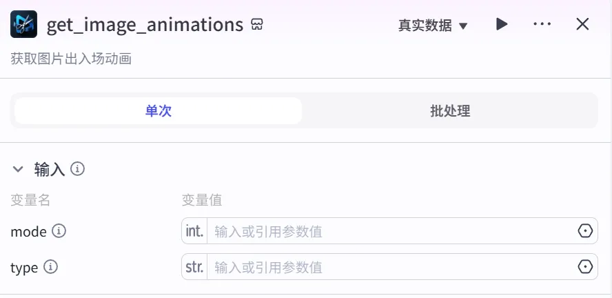获取图片出入场动画,作用很直观,然后可以从数据里选择需要的传入下游的制作数据里面