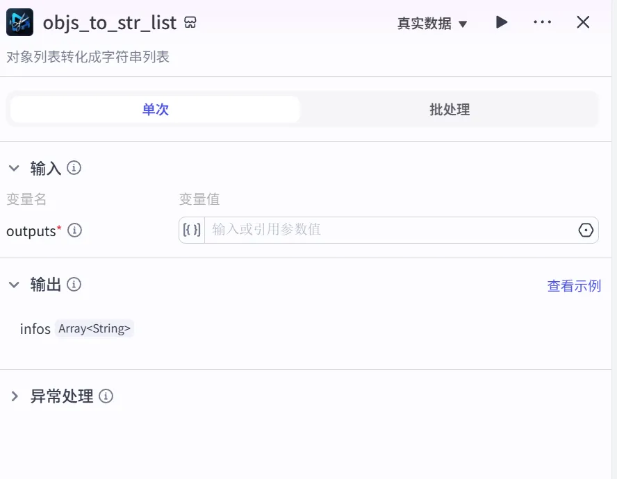 对象列表转化成字符串列表,字面的意思,和上一个节点功能正好相反。
