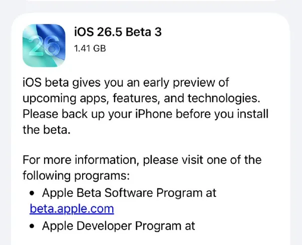 iOS/iPadOS 26.5 Beta 3来袭:修复卡顿,体验更流畅!