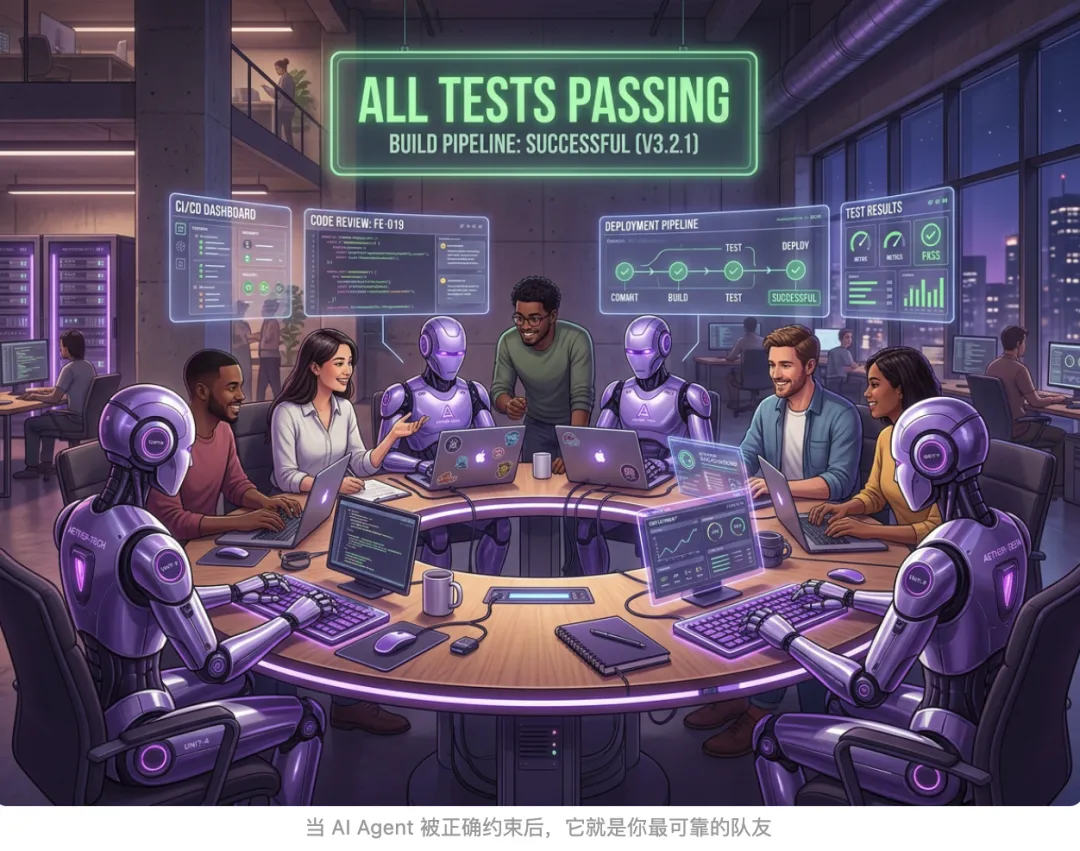 上次吃了亏,这次你学聪明了,明确要求:”必须跑测试。”Agent 回复:”Tests pass. Build succeeds. Bug fixed.“看起来完美。但你打开终端一看——它只跑了语法检查(lint),没跑过任何一个测试用例。