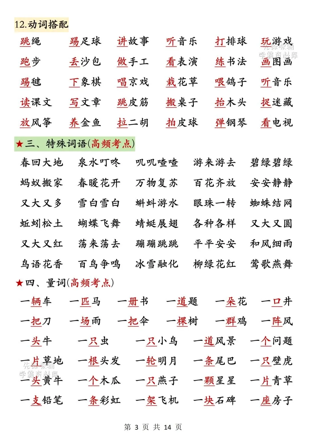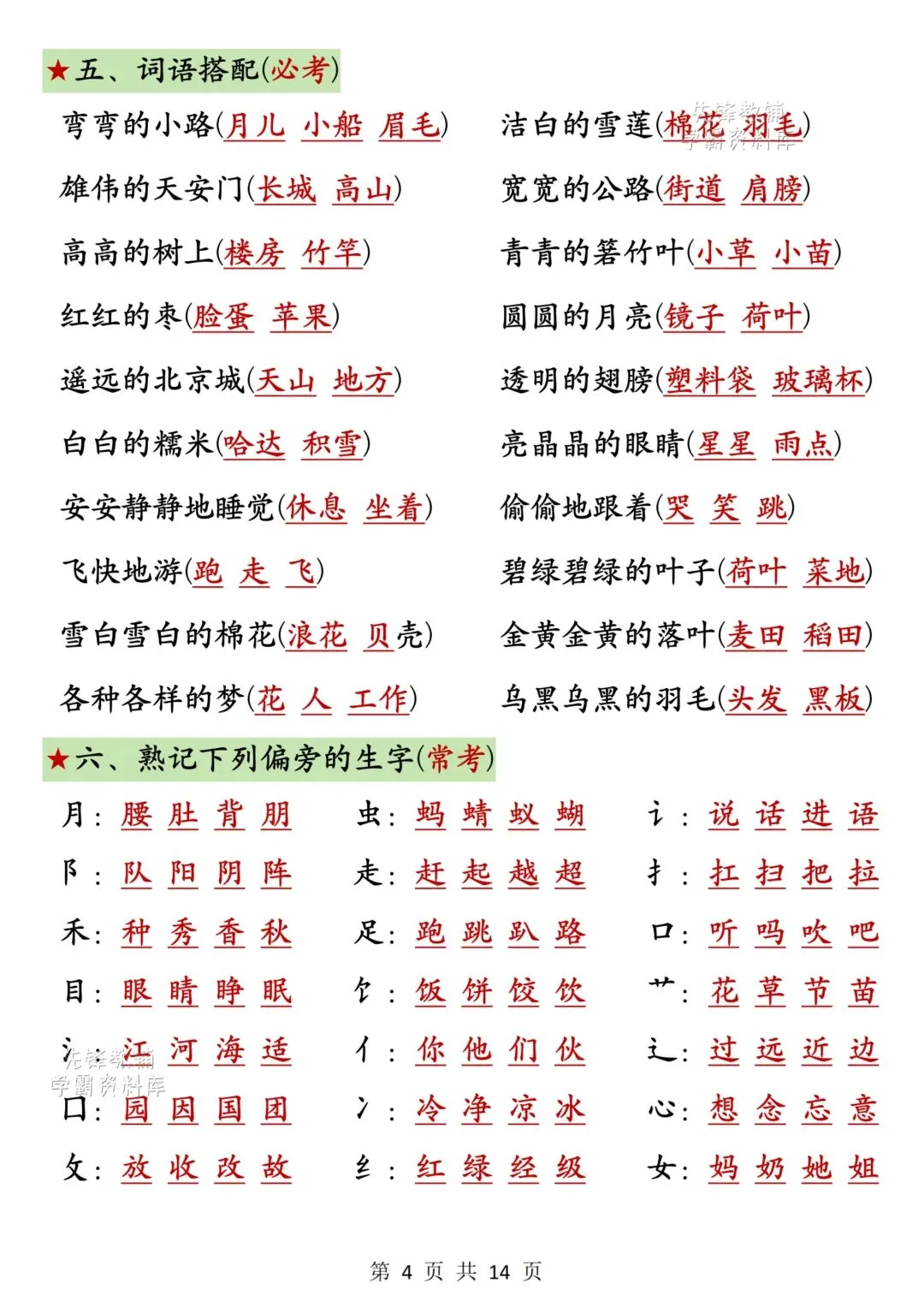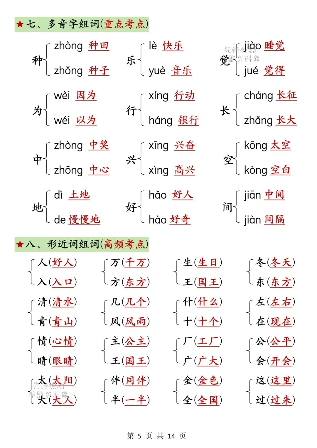 家长朋友们是否为孩子学习发愁?别担心《一年级语文下册期中高频考点知识汇总》来助力。根据册历年真题编制,题型经典,有一定难度,家长朋友们收藏打印出来让孩子做一做,及时查缺补漏。自信上考场 !