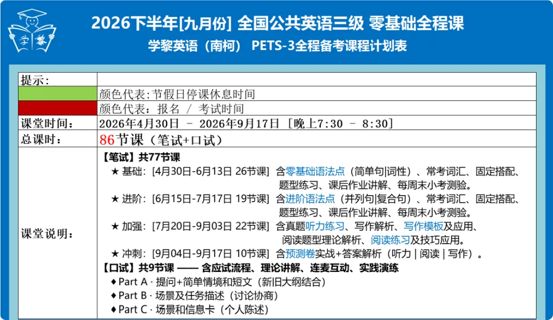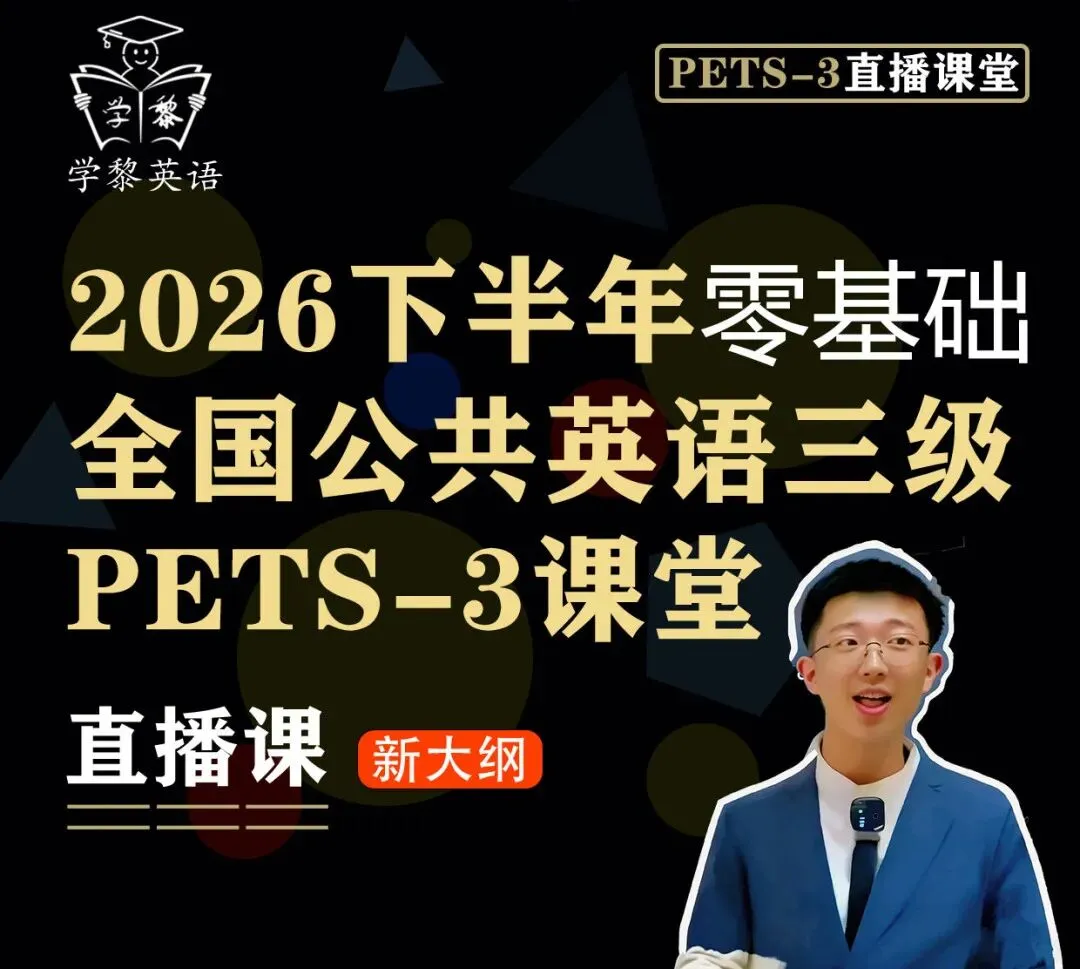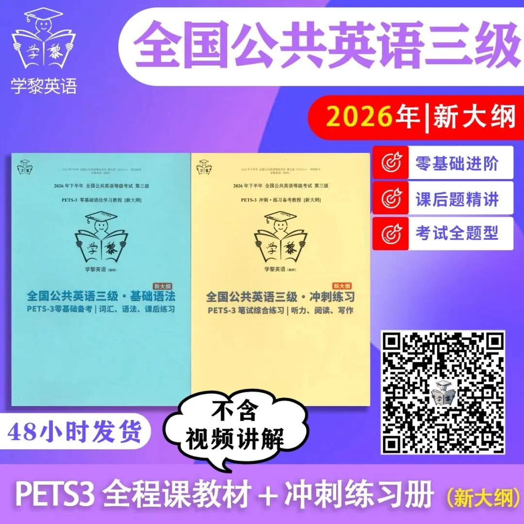 官网最新考纲已定!【资料下载】2026下半年全国公共英语三级(PETS-3)备考零基础全程课新大纲课件+最新考题训练!