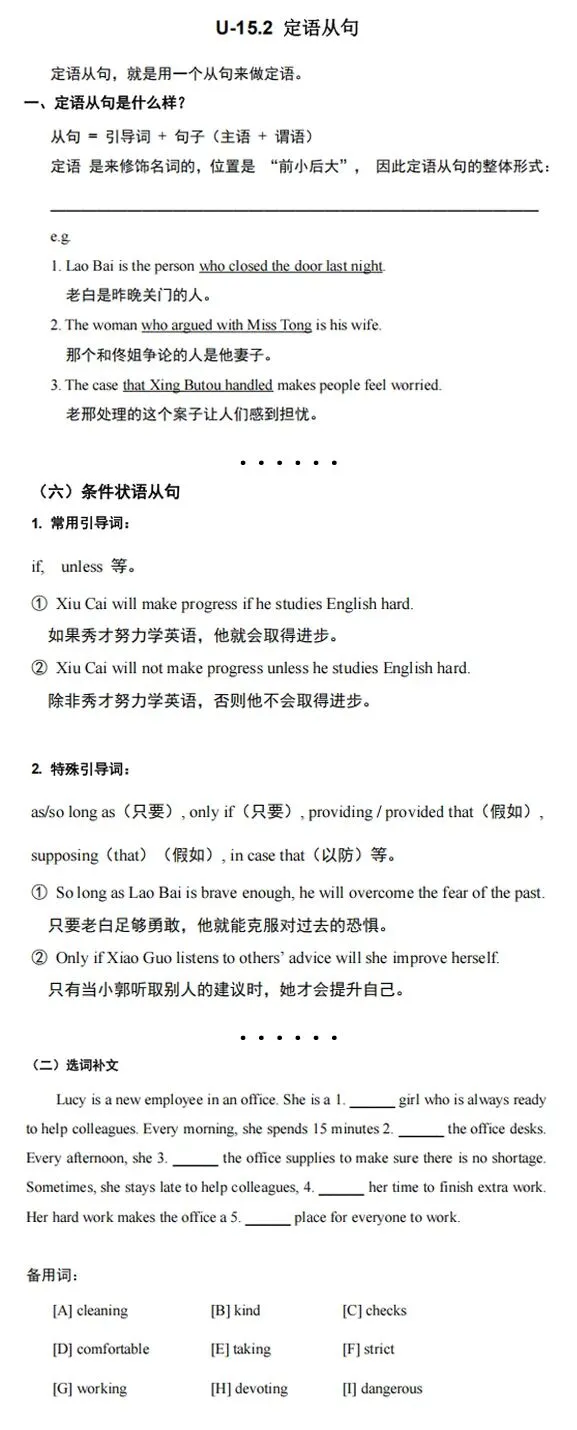 (3)进阶语法部分,名词性从句、定语从句、状语从句等各类复合长句,从入门手把手带到熟练!为考题长难句分析奠定坚实基础。