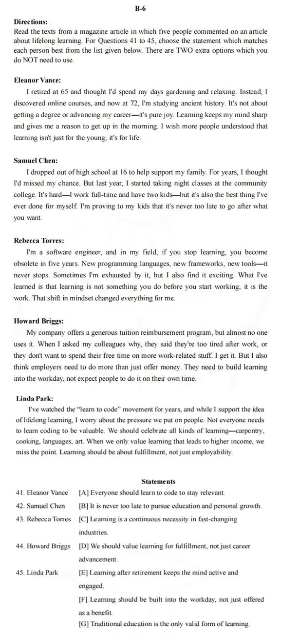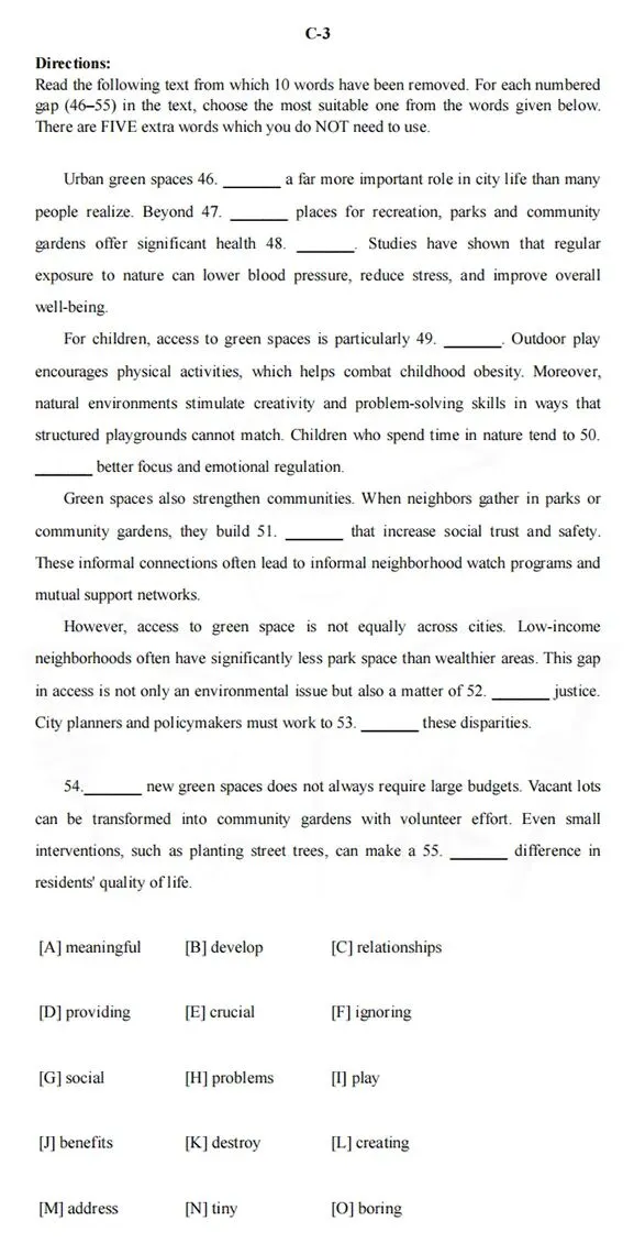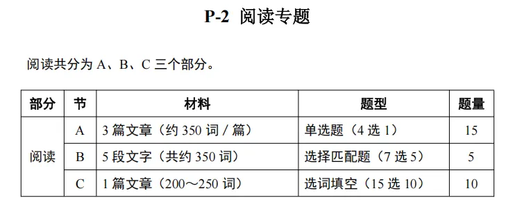 A/B/C阅读题型专项部分,高度模拟考试题型。包含短文理解,主旨匹配,选词填空全方位的题型训练。
