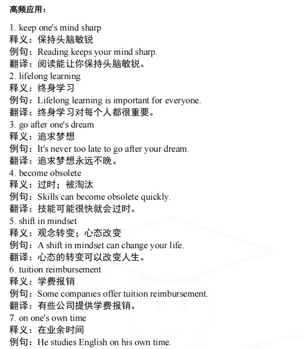每篇阅读练习后,提供高频搭配总结记忆,举一反三,帮助牢记用法,即使考题遇到也能正确领会!