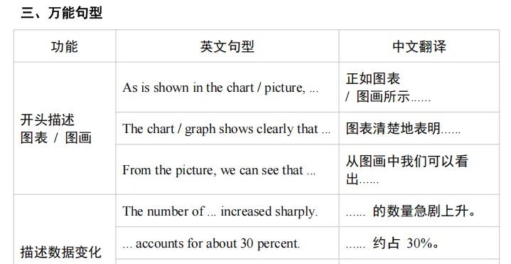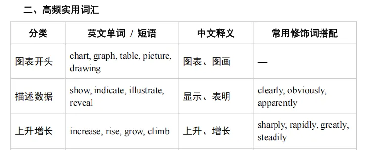 提供充分切题的训练素材,练习提炼、描述图表/图片中的关键信息,相关话题展开,输出个人观点,进行论述。含写作切题万能句型,高分输出框架,写作黄金模板。