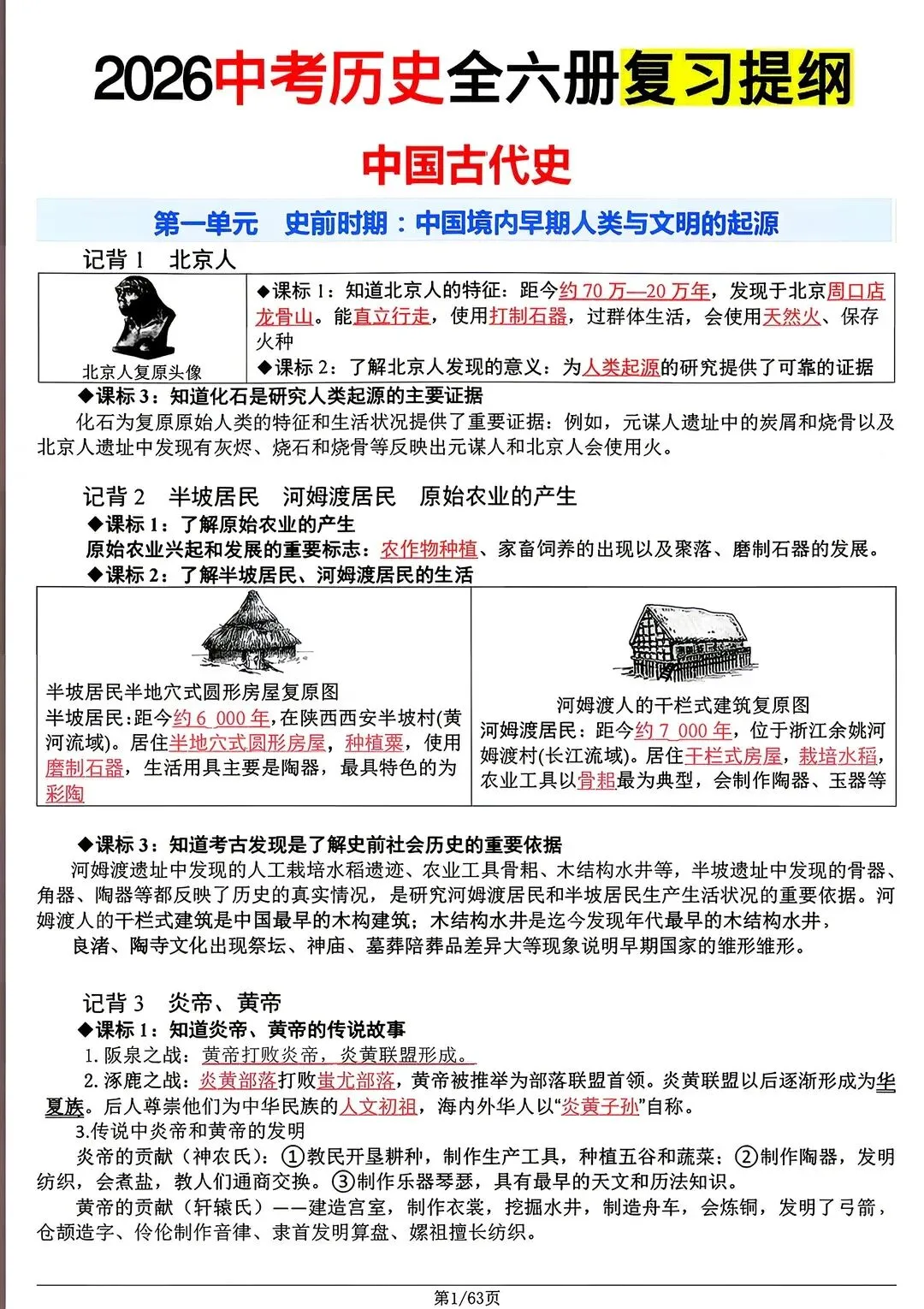 2026中考历史全六册复习提纲(电子版可打印)