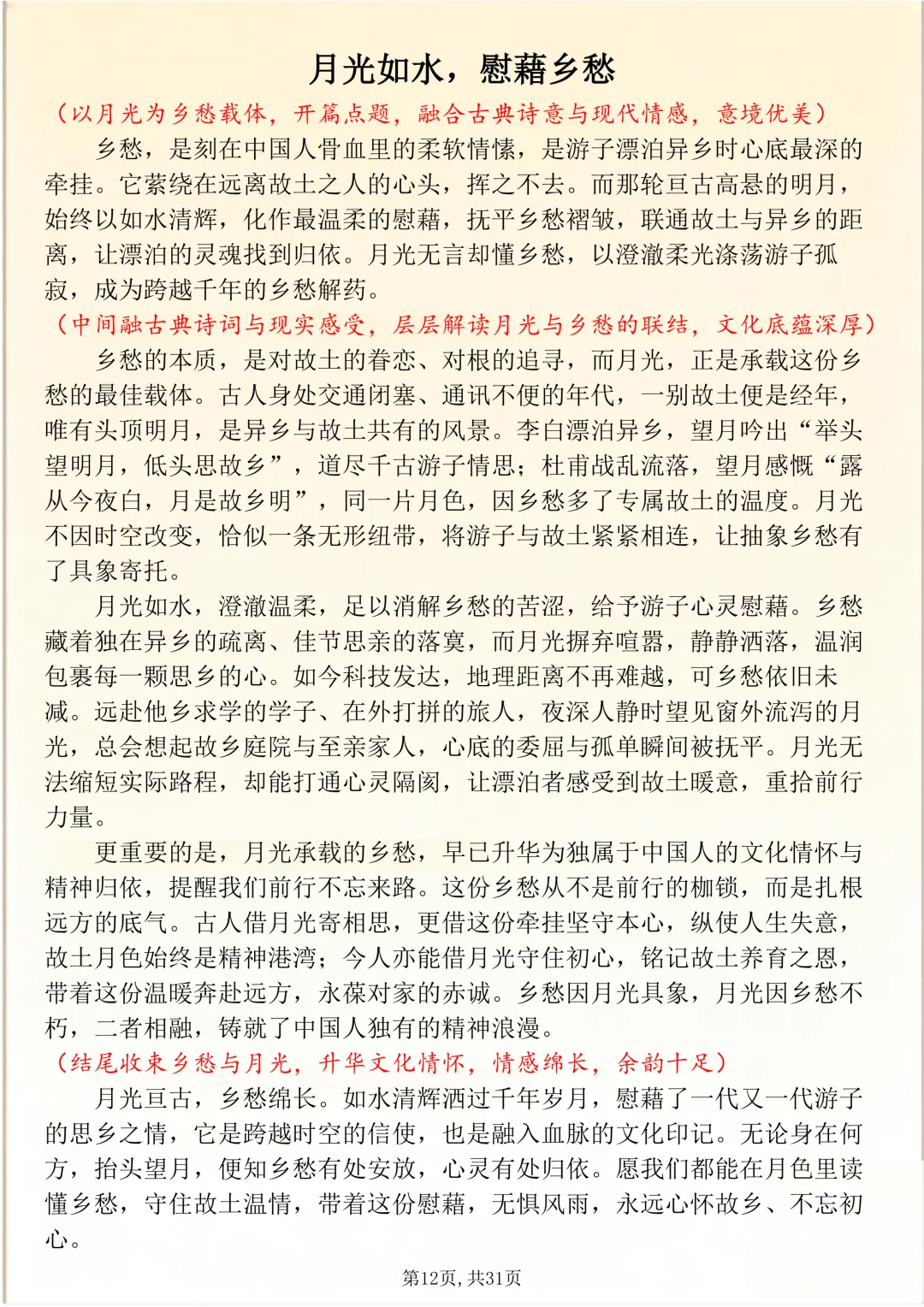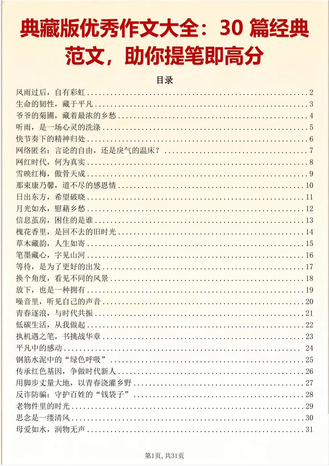 可打印,30 篇经典范文,助你提笔即高分 因篇幅有限,点击我的头像私信我回复 “资料获取” 就可以领取 word 电子版。以下是部分资料内容,完整高清版的发送私信即可。 本篇文章一共 30 篇,完整版可打印↓↓↓