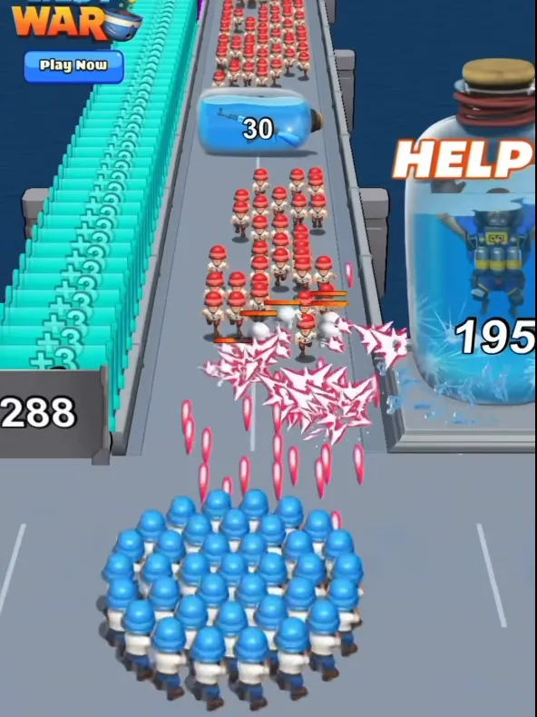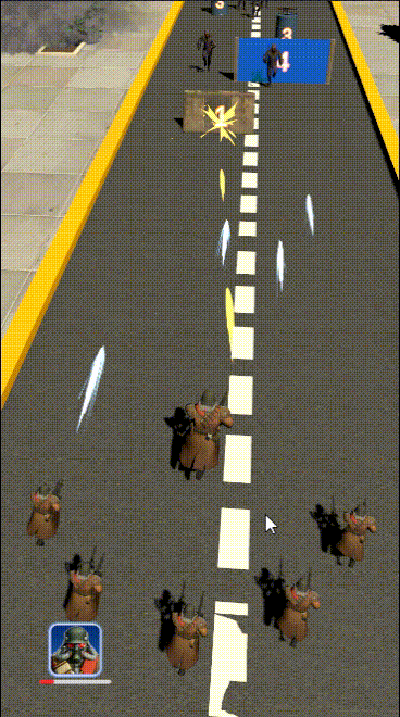核心玩法: 玩家控制一支由主力兵种(战士/弓箭手/法师)和小兵组成的队伍,在无限滚动的道路上前进。通过左右移动躲避障碍、攻击敌人、收集增益物品,直至全灭判定游戏结束。