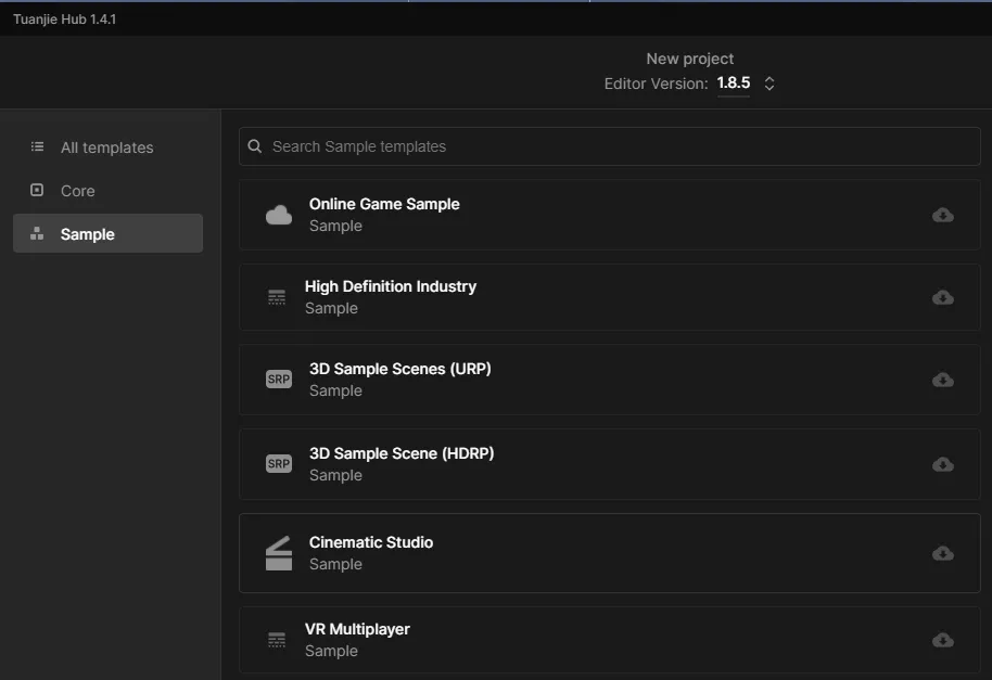 打开创建项目的页面,发现里面有很多模版,不知道该用哪个,大概看了一下,3D相关模板的有好几个。