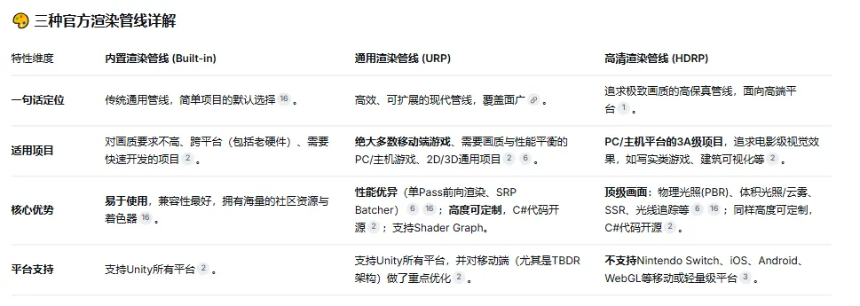 大概看了一下,关键区别应该就是URP、HDRP之类的,这些概念不熟悉,DeepSeek出场,问它就可以了,很快就搞明白了。