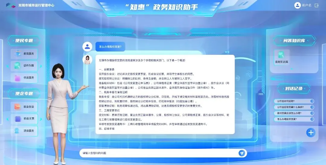 第二,统一底座。近年来,无锡坚持底座先行、统一赋能,建设了“知惠”政务大模型公共服务平台,已完成DeepSeek、文心、通义千问等17个主流大模型的本地化部署和多模型纳管,实现了算力调度、模型管理、安全审计等共性能力的统一供给。