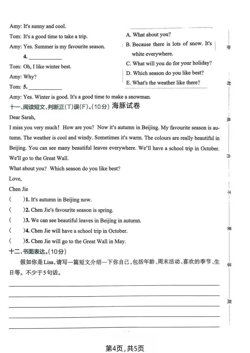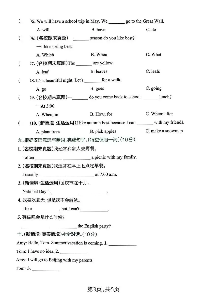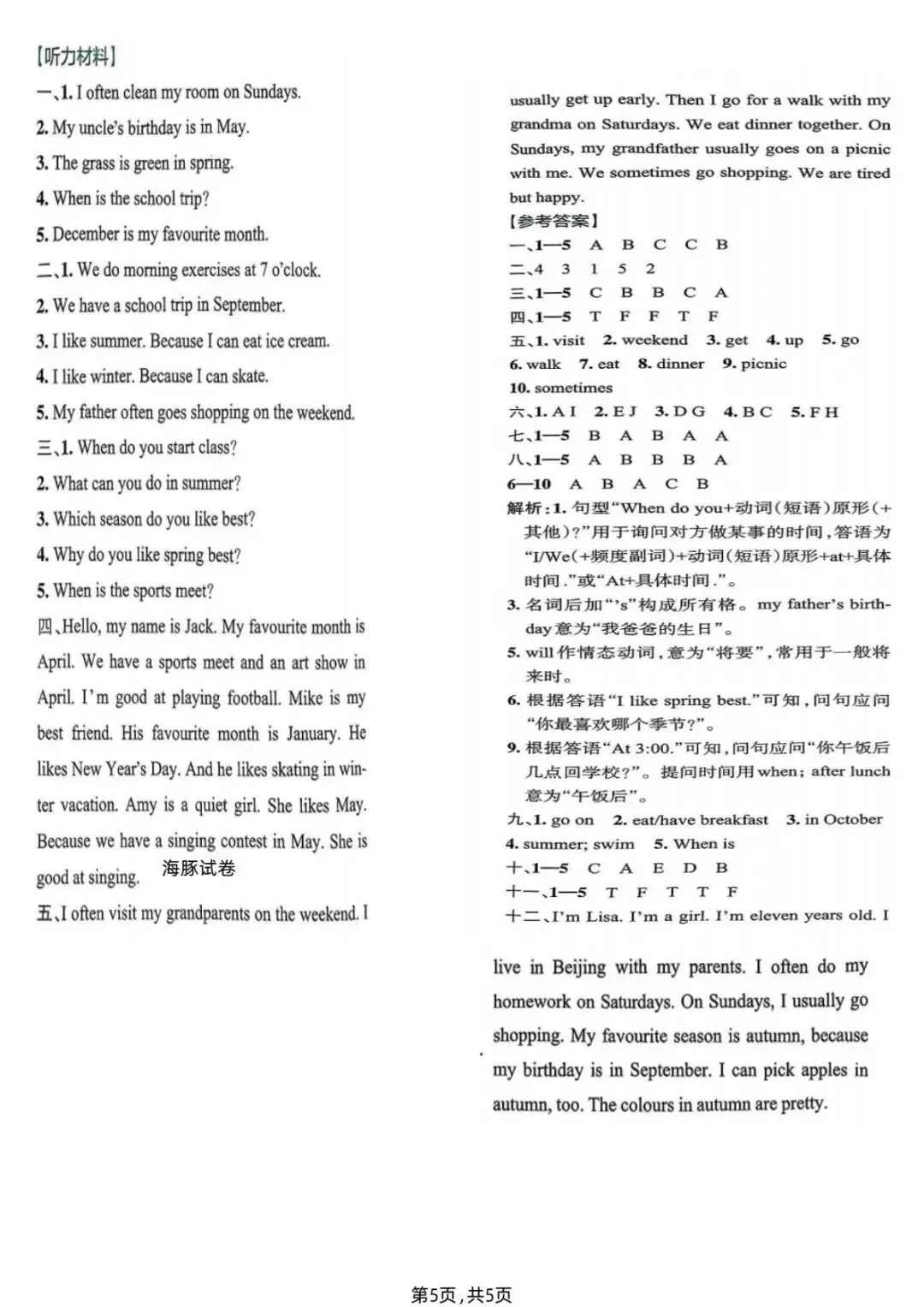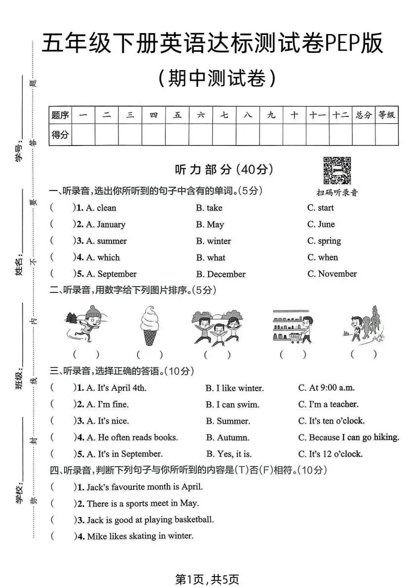 26春3-6年级下册人教PEP版英语《期中拔尖测试卷》多套(含答案),pdf可下载